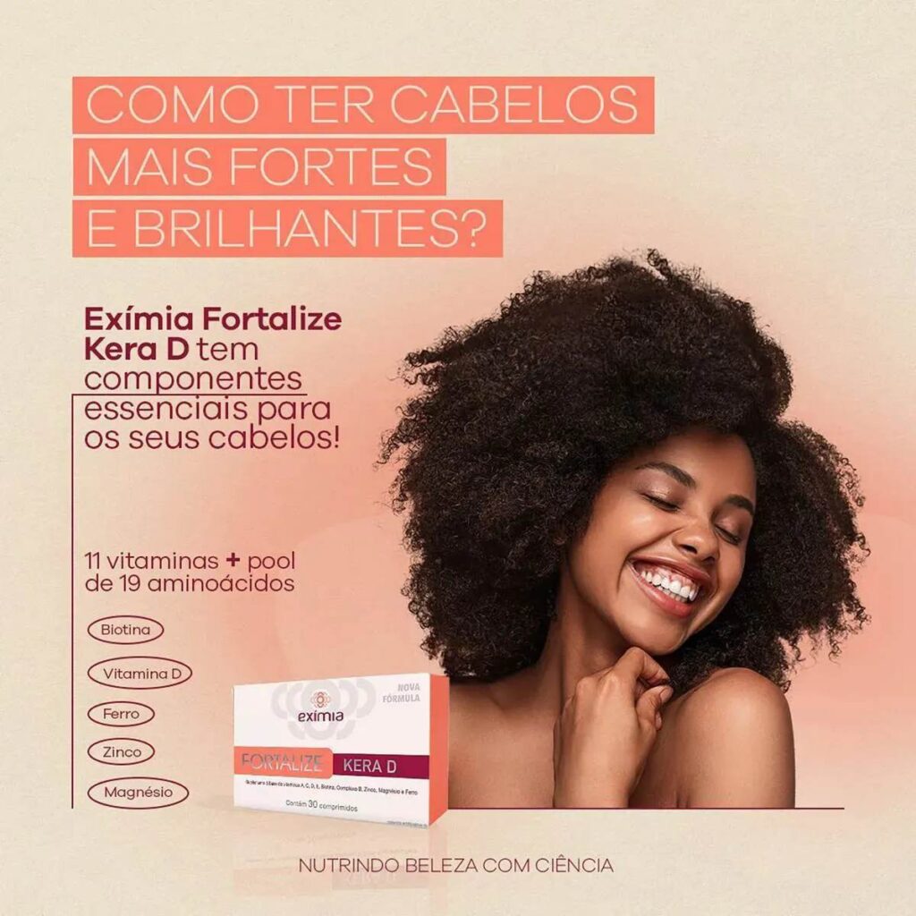 ExĂmia Fortalize Kera D Ă© um suplemento vitamĂnico desenvolvido para fortalecer cabelos e unhas, promovendo crescimento saudável e prevenindo a queda. Sua fĂłrmula avançada combina 11 vitaminas essenciais, minerais e aminoácidos que atuam diretamente na saĂşde capilar e das unhas